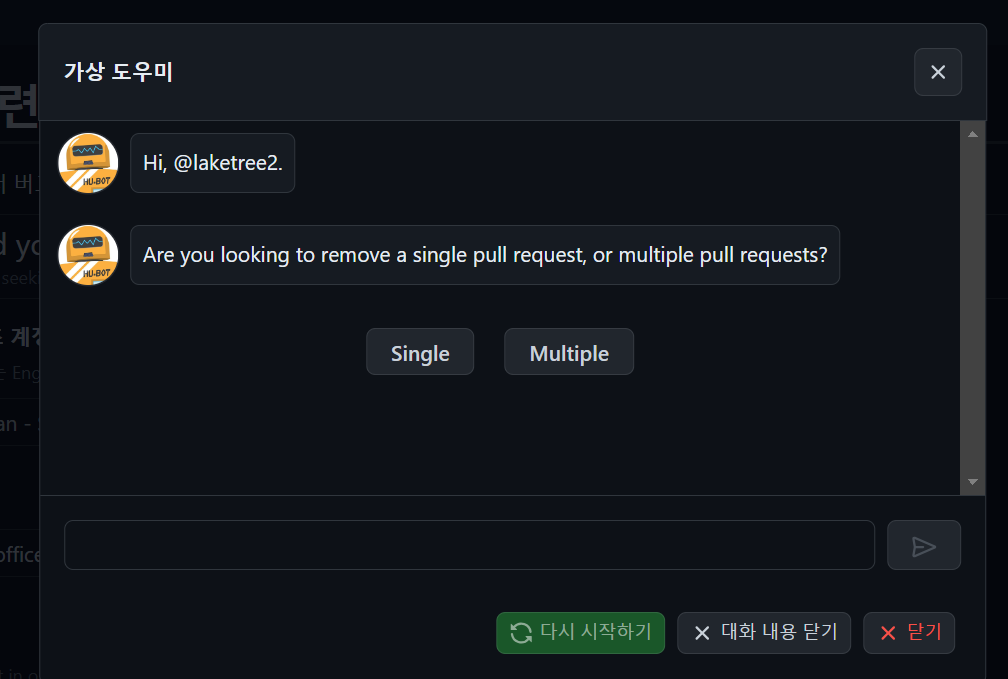 이 버튼을 누른 후 PR을 지워달라고 요청하면 된다.