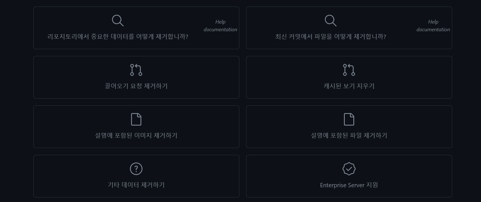 여기서 '내가 가지고 있거나 제어하는 리포지토리에서 데이터 제거하기'를 누른다.